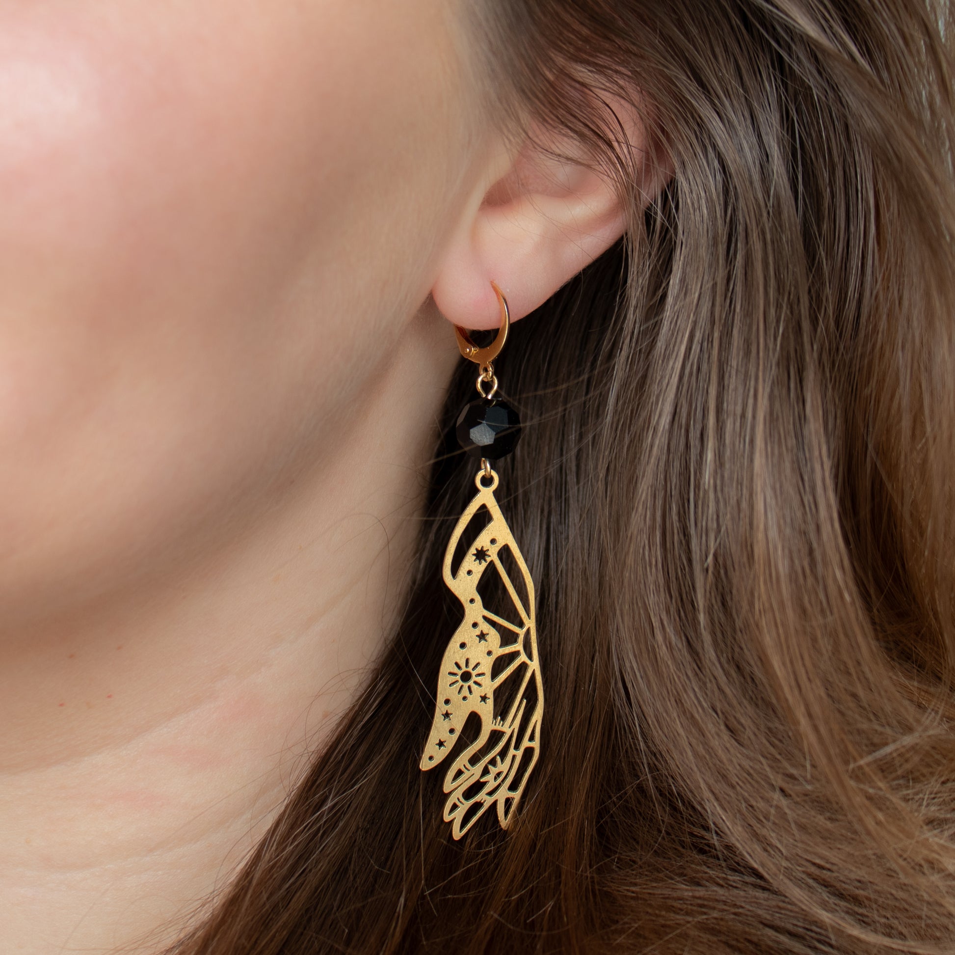 Handmade Hand Earrings with Black Beads and Gold Charms – Spiritual Jewellery