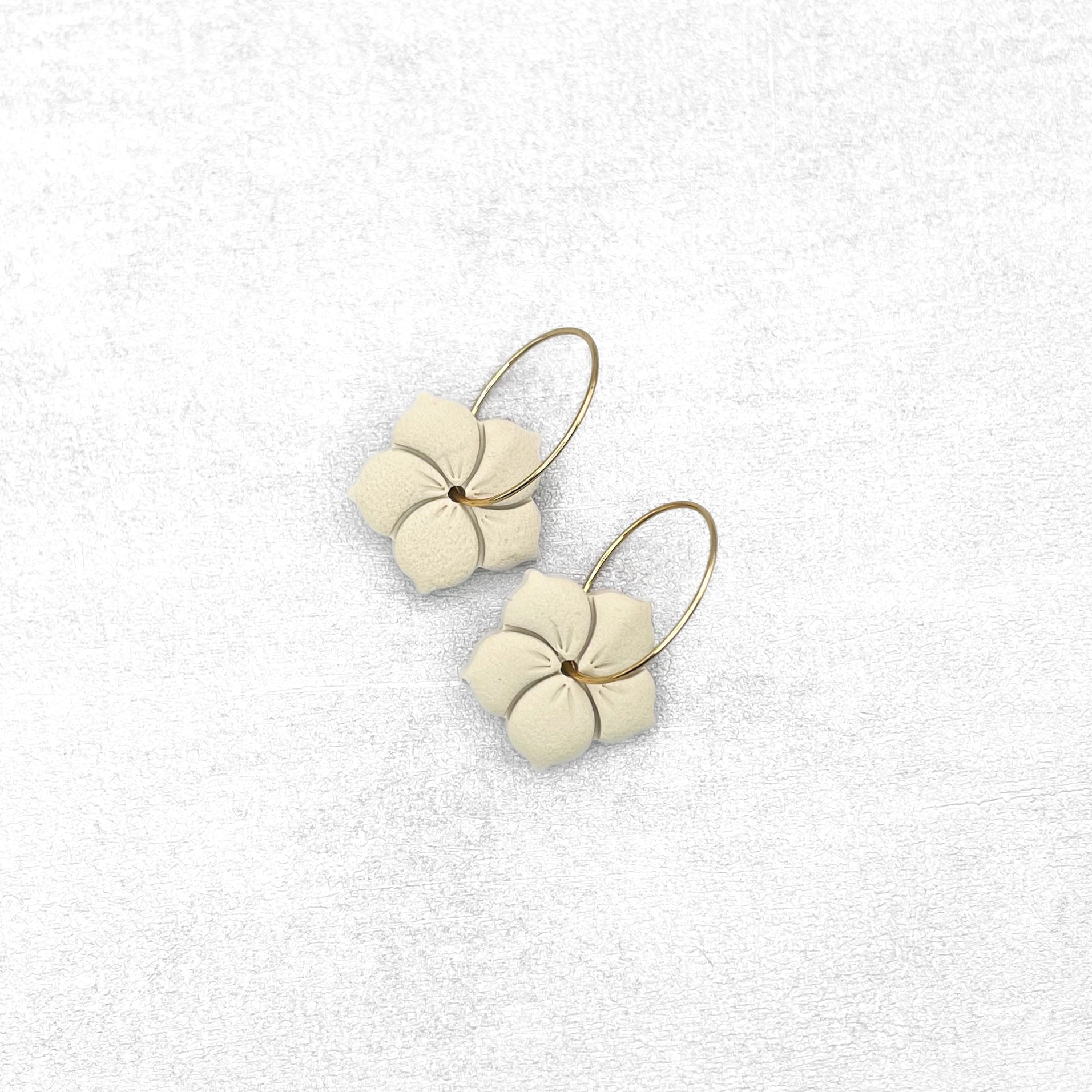 Handmade Cream Hibiscus Earrings – Flower Polymer Clay Jewellery