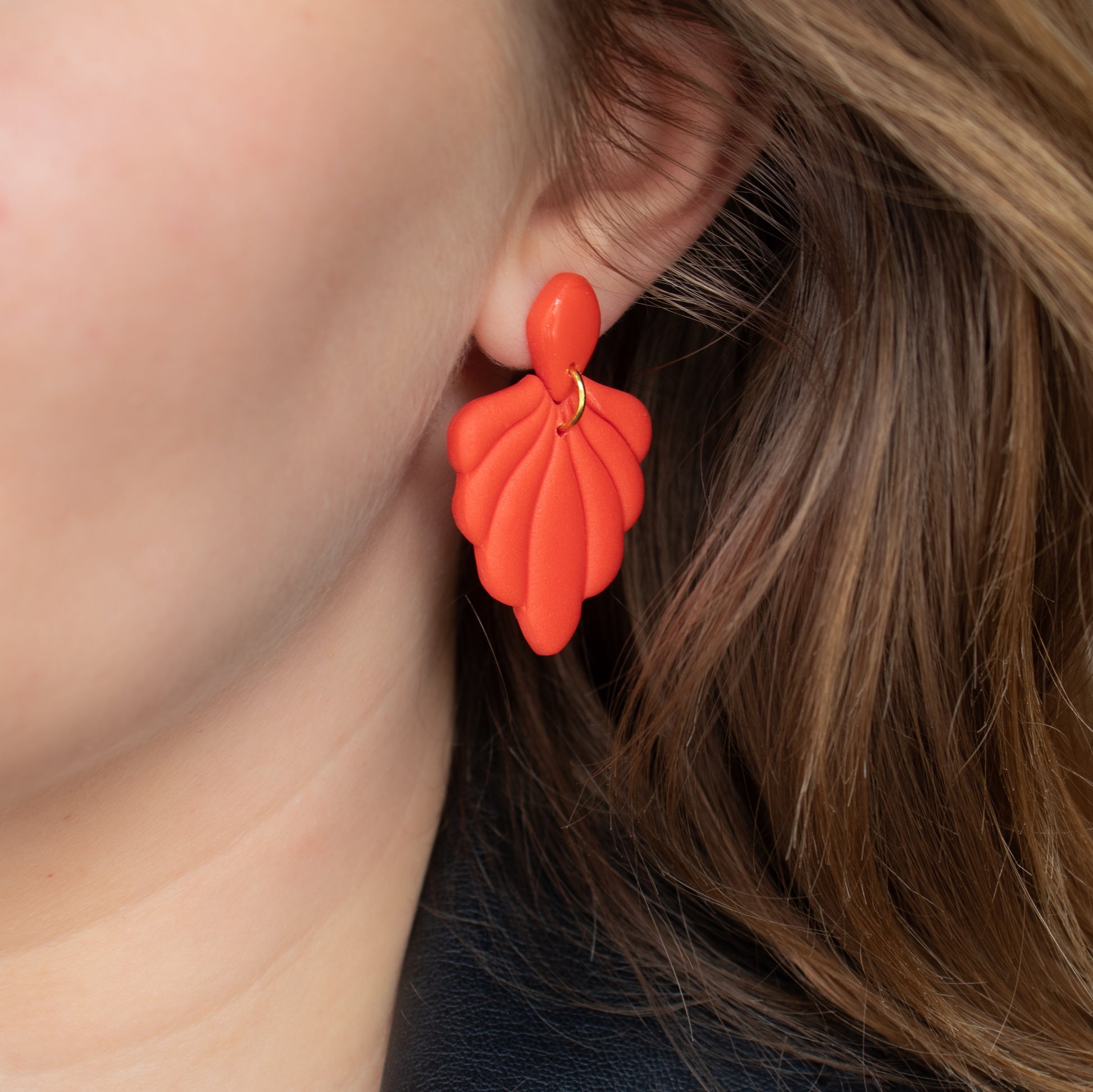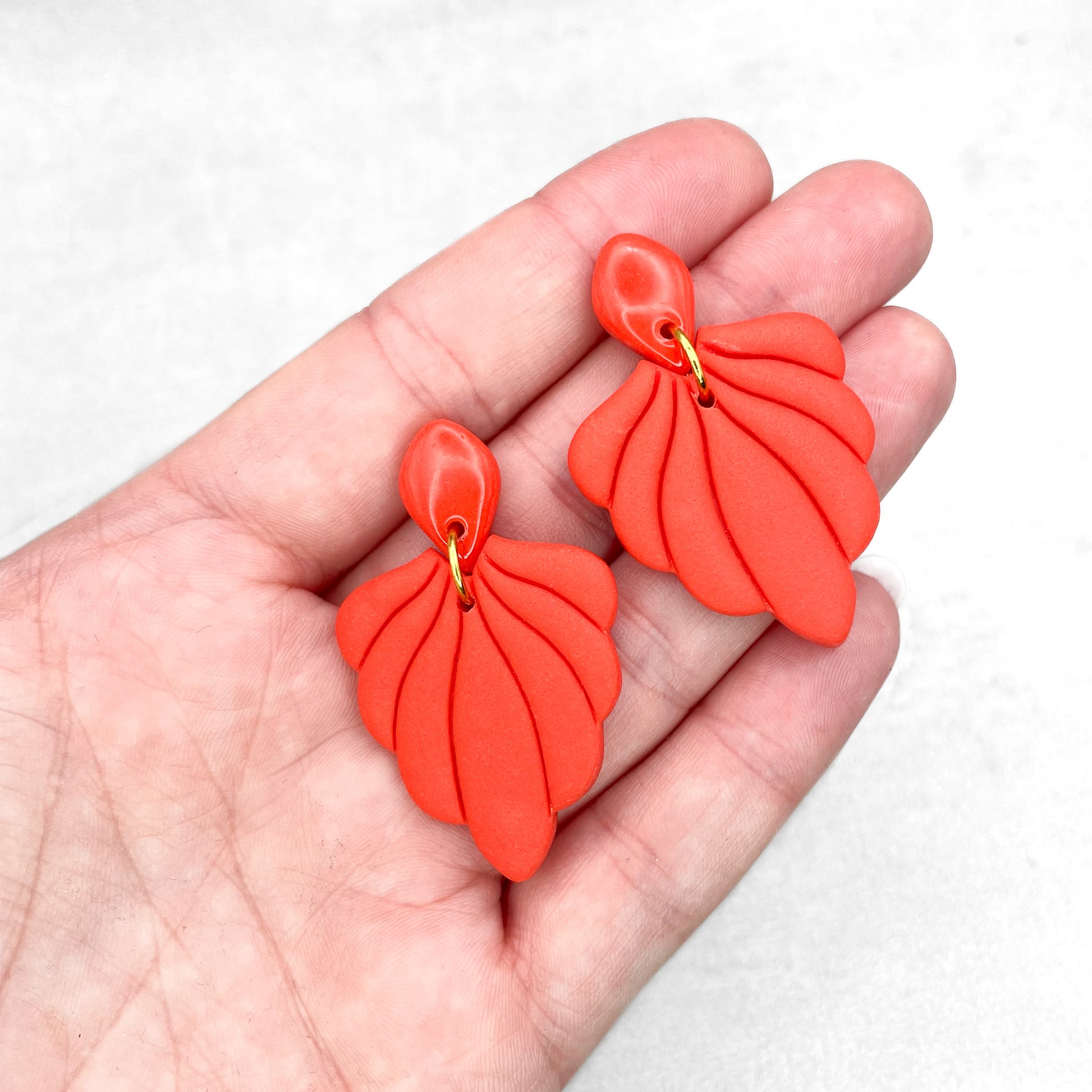 Handmade Orange Red Shell Earrings – Statement Polymer Clay Jewellery